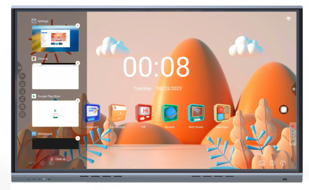 Pantalla Interactiva Computerland de 65″ resolución 4K (3840x 2160), 450 nits de brillo, soporta hasta 20 puntos función de compartir video de forma inalámbrica, sistema operativo Android 14 con navegador de internet, Procesador de 8 núcleos A55 8 gb en ram y 128 gb de almacenamiento, cámara web HD y 8 micrófonos integrados, 2 altavoces de 16 watts, 5años de garantía
