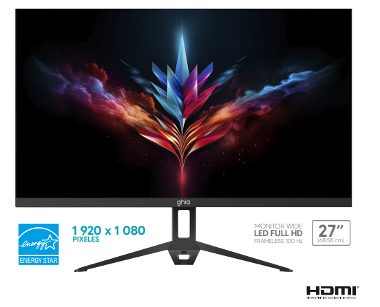 MONITOR GHIA / 27 PULG / LED / IPS / FULL HD 1920 X 1080 / FRAMELESS / 100 HZ / FREESYNC / HDMI / DP / VGA / BOCINAS INTEGRADAS