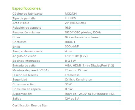 Sé el primero en valorar “MONITOR GHIA 27 PULG LED”